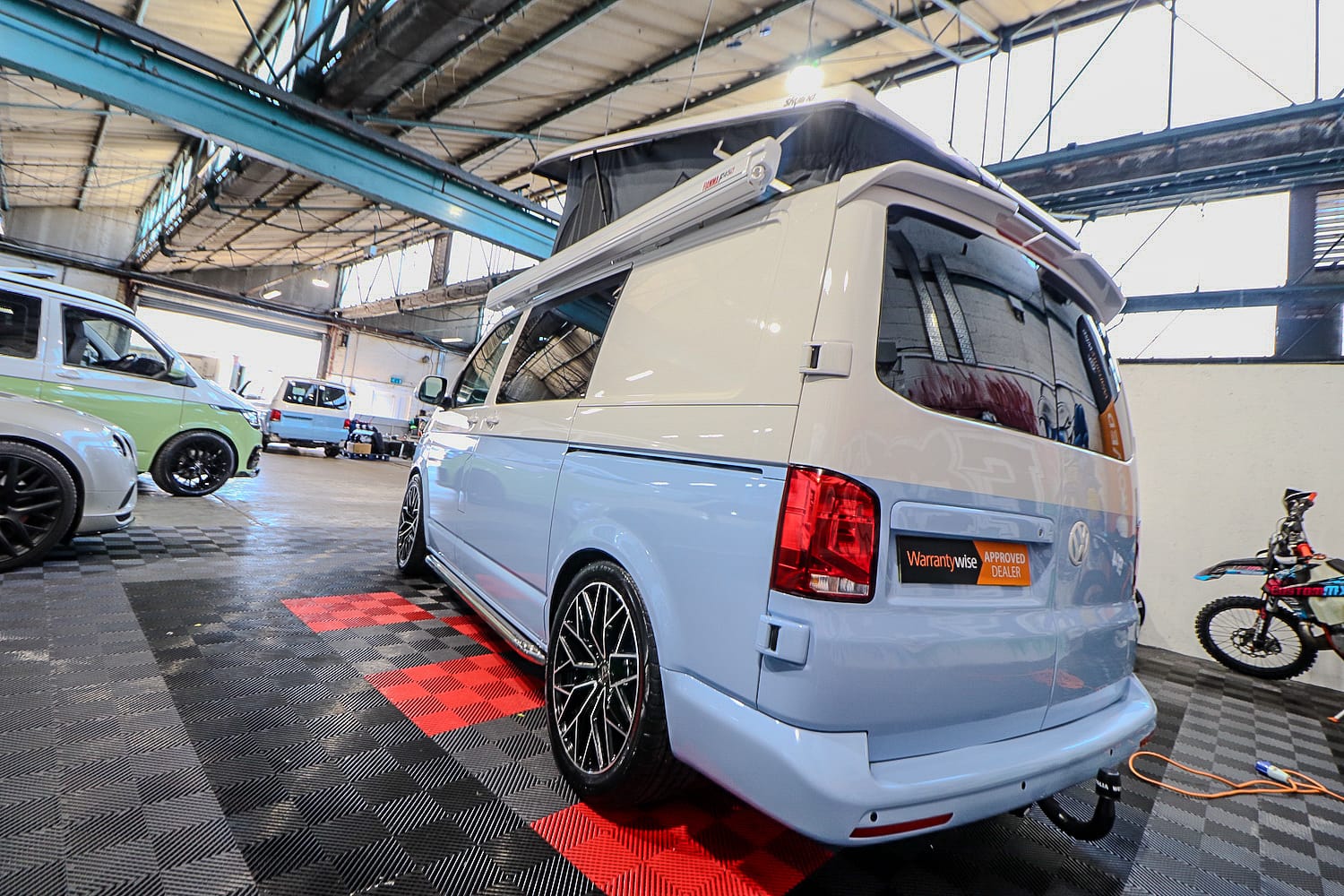Turn every journey into a getaway with this stunning ‘Retro’ Signature Series VW Transporter Camper – a head-turning blend of vintage style and modern luxury. Finished in retro baby blue over white and paired with a full luxury interior, this unique camper combines timeless looks with the latest in comfort and practicality.