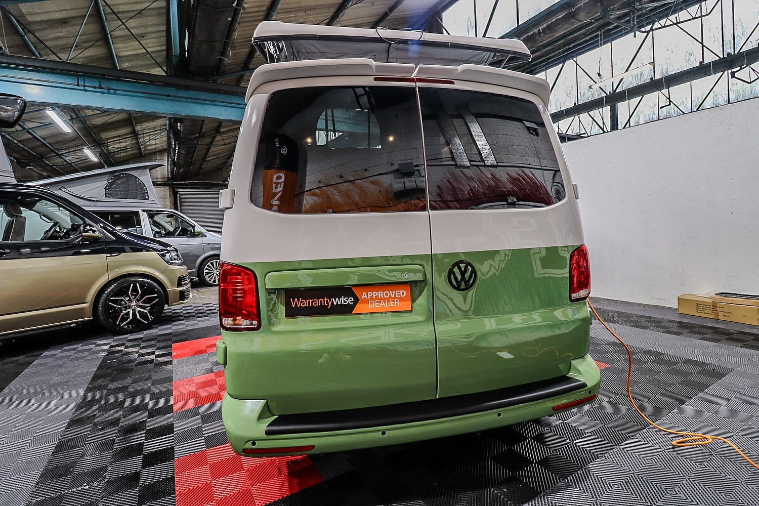 A rare, low-mileage Retro Style show-stopper finished in New Style Green over White, set off by 20″ black retro alloys and lowered suspension. Built to our Signature Series spec for premium comfort and true off-grid capability—outstanding value and mileage for a highly sought-after camper.